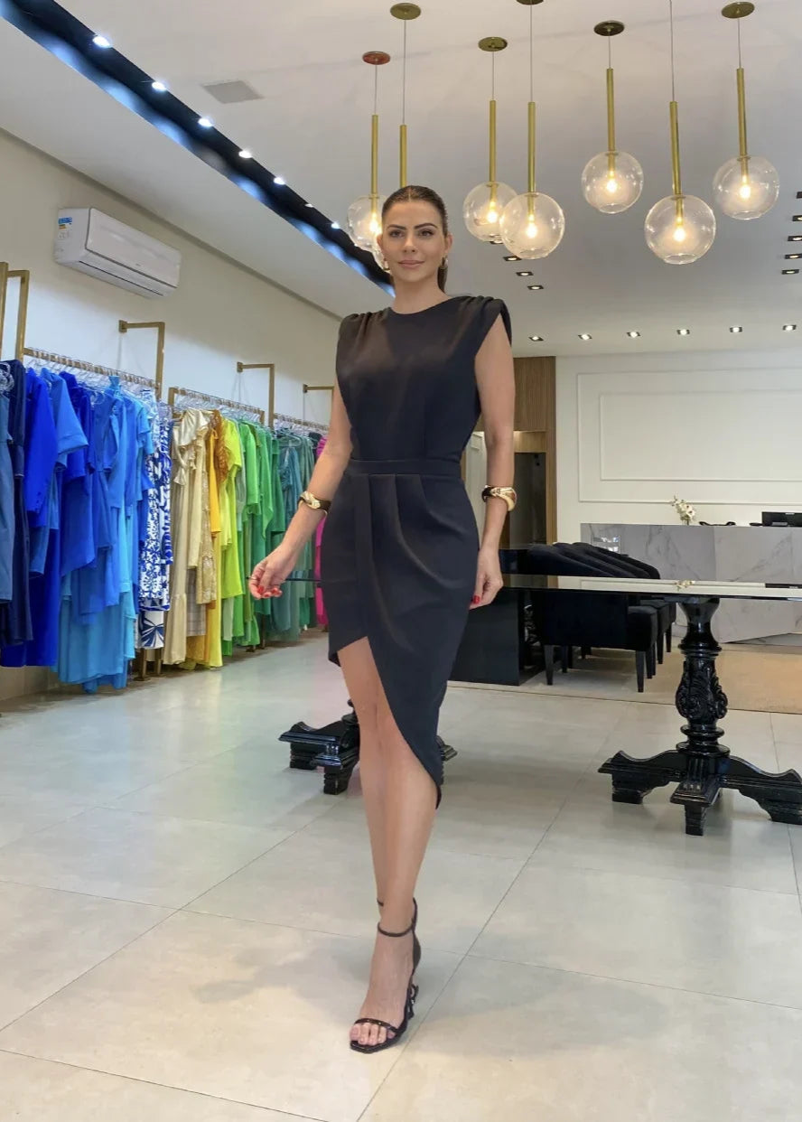 Miley is the perfect balance of elegance and contemporary charm. Designed with a soft, flowing drape that gently hugs your curves, this dress enhances every silhouette with understated sophistication. Perfect for special evenings, ceremonies, or moments when you want to shine effortlessly.