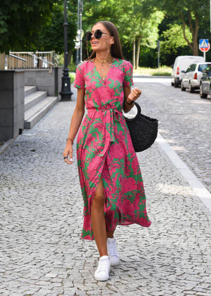 Noiea is the dress that combines timeless sophistication with graceful comfort. Designed with a soft V-neckline and a flattering drape that gently conceals the midsection, it enhances your natural shape while offering ease in every movement. Perfect for both everyday wear and elegant occasions.
