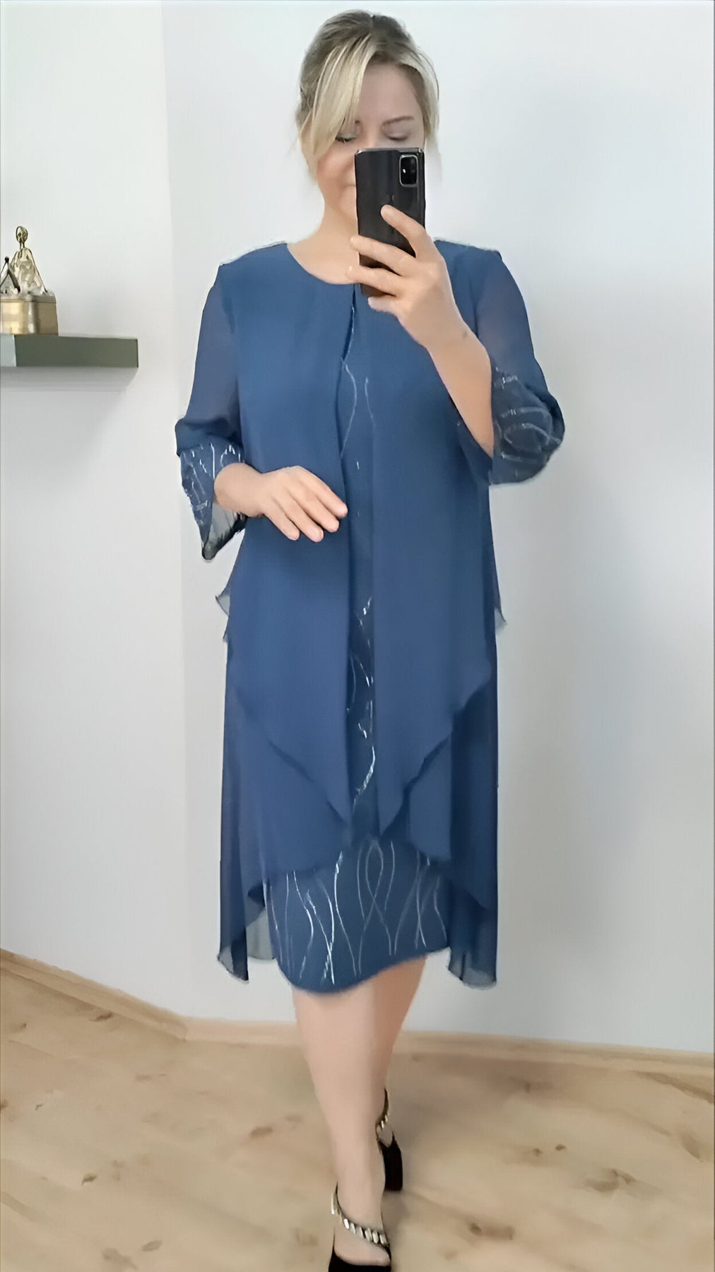 Lightweight, semi-transparent sleeves add beauty while offering modest coverage.
